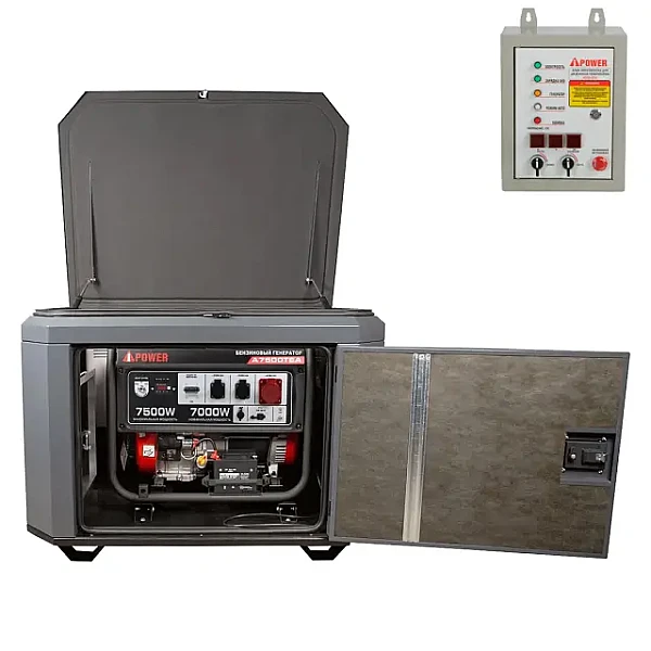 Бензиновый генератор A-iPower A7500TEA в супертихом зимнем кожухе 1400SS RAL 7024 + блок автозапуска A-iPower 400 В, 25 А