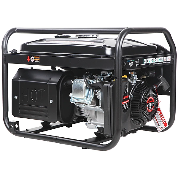 Прочная рама надежно защищает бензогенератор от повреждений. Двигатель установлен на толстых резиновых подушках, которые отлично гасят вибрации. Техническое обслуживание агрегата максимально упрощено - воздушный фильтр, маслозаливная горловина и другие узлы, периодически требующие внимания, расположены на видном месте с хорошим доступом.