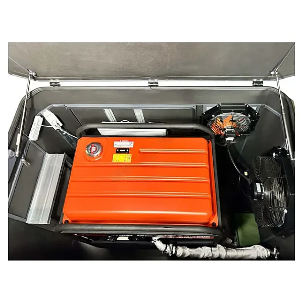 Транспортировочный комплект, состоящий из колес и удобной ручки, упрощает перемещение бензогенератора по объекту и погрузочно-разгрузочные операции. На стальном раме установлены упоры с амортизирующими резиновыми подушками, которые повышают стабильность и препятствуют опрокидыванию при размещении оборудования на неровной поверхности.