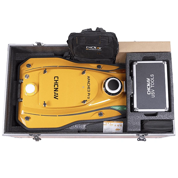 Безэкипажное судно APACHE 3 Pro создано для автоматизации процесса выполнения полевых промерных работ при инженерно-гидрографических и инженерно-гидрометеорологических изысканиях, таких как батиметрическая съёмка, топографическая русловая съёмка, промеры глубин на малых водоемах (озера, реки, побережья). Благодаря компактному размеру и массе (длина 1 метр, масса < 10 кг без батарей и приёмника) судном может управлять один человек.
