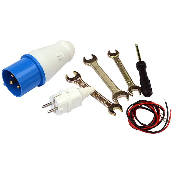 Дизель-генератор оснащен двумя розетками - силовой, для подключения оборудования промышленного класса, и стандартной, евро-формата, для работы с бытовыми приборами и электроинструментами. Также предусмотрены клеммы для зарядки аккумуляторных батарей постоянным током 12 В.