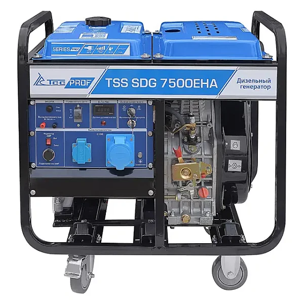 Дизельный генератор TSS SDG 7500EHA (100026) - современная электростанция мощностью 7 кВт. Агрегат готов к работе в сложных условиях, в том числе при температурах до -20 °C, и, как и другие дизельные установки бренда рассчитан на интенсивную эксплуатацию.