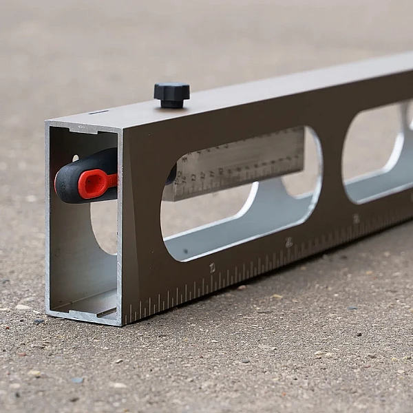 Балансир-эклиметр, установленный в полости рейки, необходим для измерения крутизны откосов и насыпей. Результаты считываются в смотровом окошке на верхней поверхности рейки.