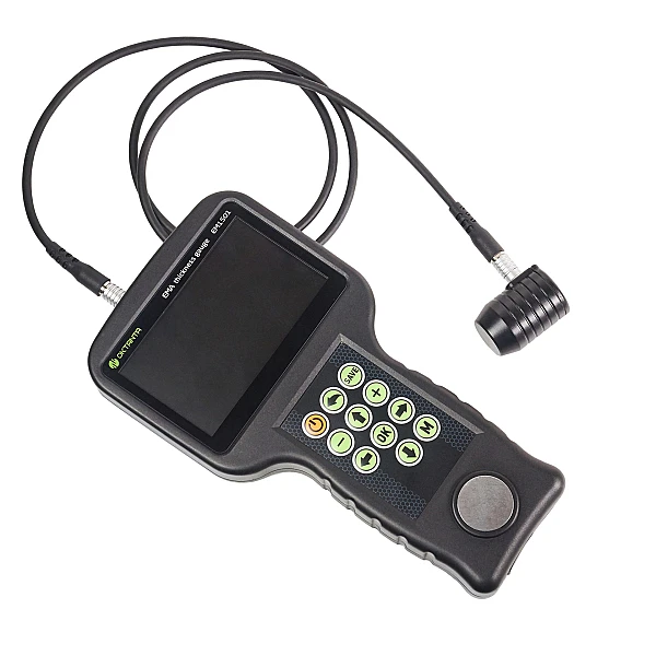 Яркий цветной экран прибора позволяет отображать толщину и А-скан для текущего объекта контроля. Помимо А-сканов EM1501 также имеет возможности построения B и C-сканов, передачи результатов измерений на ПК в табличном виде, и дальнейшего построения отчетов о результатах контроля в приложении EMViewer.