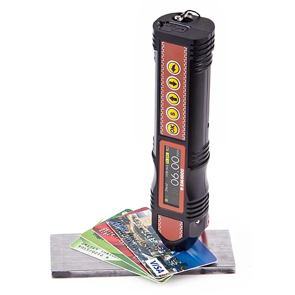 ЭМА-толщиномер EM4000 предназначен для проведения толщинометрии стальных труб, листового проката, прутов, и других изделий из стали, алюминия и других металлов с рабочим зазором между датчиком и металлом до 3х мм. Для работы ЭМА толщиномера не требуется предварительная подготовка поверхности, не требуется наличие контактной жидкости. В качестве зазора может выступать грязь, слой ржавчины, слой солевых отложений или другое непроводящее покрытие (краска, лак, эмаль, пластик и т.д.). Помимо измерения толщины металла, EM4000 позволяет измерить толщину непроводящего покрытия на металле.
