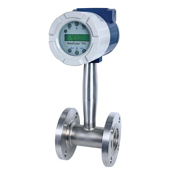 Стационарный многопараметрический вихревой массовый расходомер PanaFlow MV80 производства компании «GE Sensing» — вихревой расходомер следующего поколения. Конструкция многопараметрического расходомера PanaFlow MV80 состоит из датчика измерения скорости вихревого потока, термочувствительного резистивного датчика температуры RTD и полупроводникового преобразователя давленияю Данныйкоторый измеряет объемный и массовый расход, температуру и давление пара, газов и жидкостей.