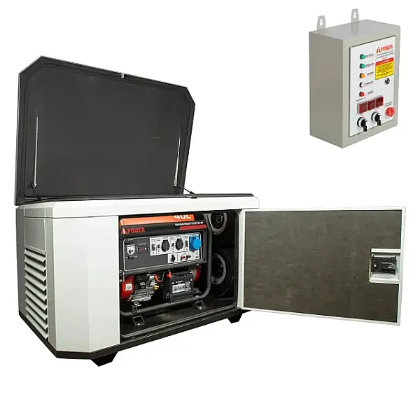 Генератор A-iPower A7000EAX в супертихом зимнем кожухе 1400SS RAL 7035 + блок автозапуска A-iPower 400 В, 25 А