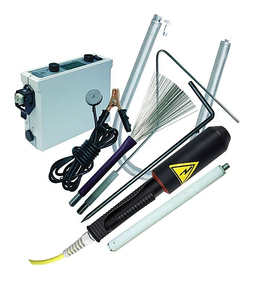 Контроль диэлектрических покрытий 0,04–1 мм импульсным 0,7–4 кВ с цифровой индикацией на электроде.