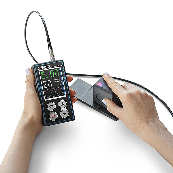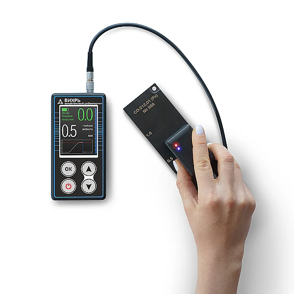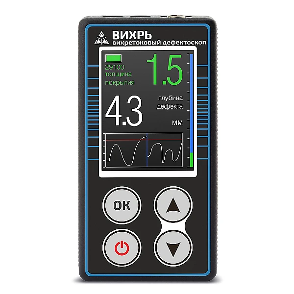 Многофункциональный магнитно-вихретоковый дефектоскоп Вихрь предназначен для выявления и определения глубины трещин, стресс-коррозионных трещин в металлических ферромагнитных конструкциях, в том числе под слоем коррозии и/или защитного покрытия. Кроме того, дефектоскоп позволяет определять глубину коррозионного повреждения, а так же толщину защитного покрытия.