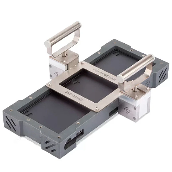 Конструктивно приспособление состоит из стального основания, на котором закрепляются два магнитных держателя и детектор Экоскан 10 в защитном кожухе ЭКО-10У. Крепление магнитных держателей к объекту контроля производится с помощью переключаемых магнитных систем. Отрыв держателей с детектором от поверхности производится без прикладывания усилий при повороте двух ручек (горизонтальное положение ручек — магниты активны, вертикальное положение — магниты неактивны).