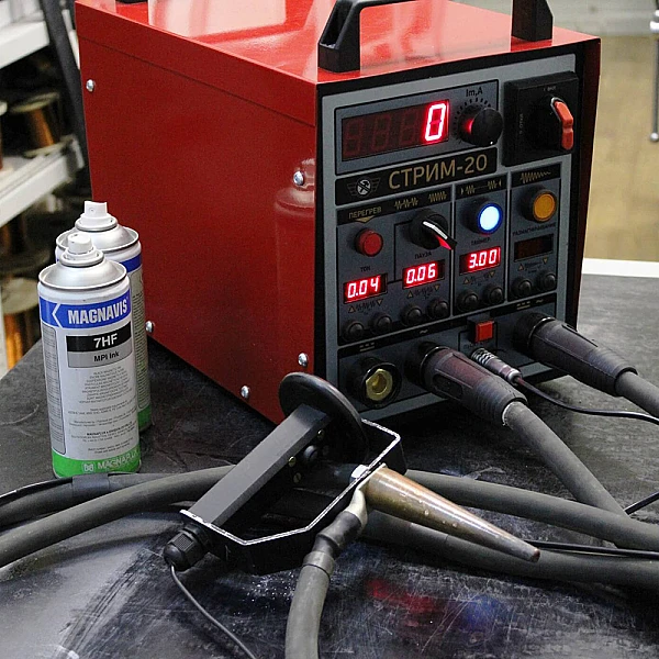 Магнитопорошковый дефектоскоп СТРИМ-20 производства НПП “Машпроект” предназначен для неразрушающего контроля металлических изделий. Прибор предназначен для обнаружения поверхностных и подповерхностных дефектов при контроле изделий из ферромагнитных материалов. Позволяет выявить трещины, флокены, несплавления.