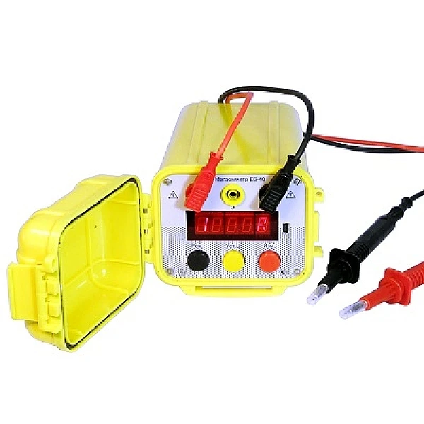 Мегаомметр Е6-40 предназначен для измерения сопротивления изоляции, а также диагностики состояния изоляции электрических цепей и оборудования не находящихся под напряжением. Также прибор позволяет измерять коэффициент абсорбции, поляризации и внешнее переменное напряжение на клеммах до 600 В.