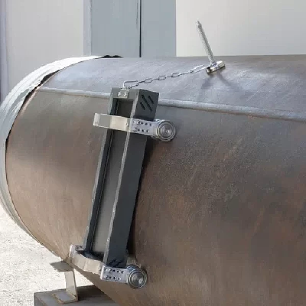 Защитный чехол имеет возможность позиционирования на объекте контроля с помощью ремней, которые могут либо охватывать объект, либо растягиваться на специальных магнитных креплениях.