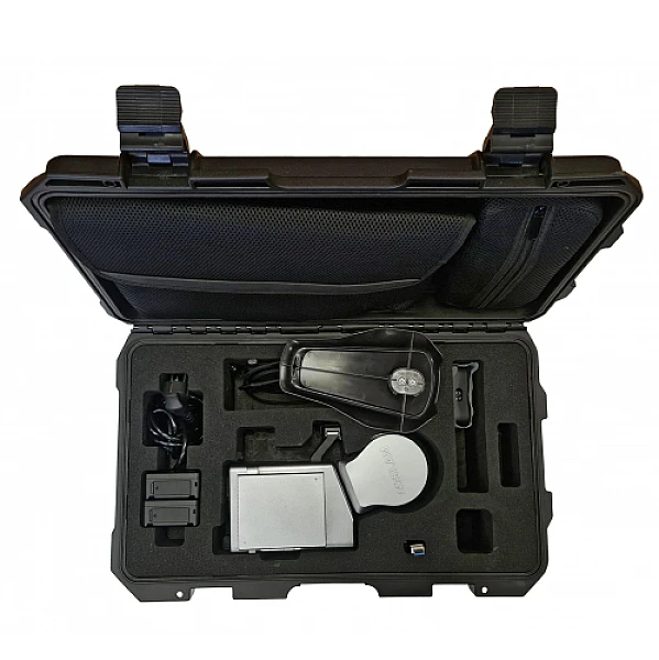 В качестве дополнительного аксессуара можно использовать панорамную фотокамеру Insta360 X3 для создания реалистичного облака точек в RGB виде, и создания геопривязанных панорамных фотоснимком с требуемым шагом. Получаемые данные служат хорошим абрисом, например, при отрисовке топографических планов. Камера один раз крепится к L-образному креплению, после чего, установка и снятие камеры происходит с помощью быстросъемного механизма.