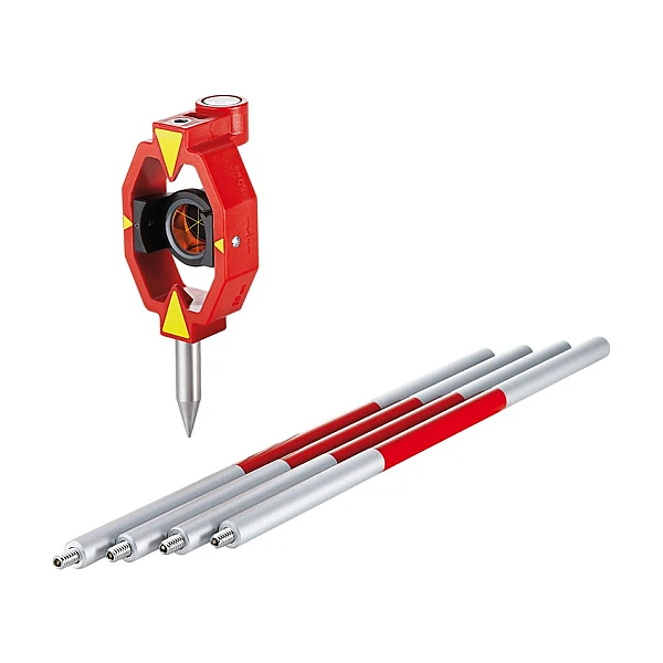 Leica GMP112 – минипризма с дополнительным коленом минивехи длинной 30 см. Используется совместно с отражателем Leica GMP111. Обеспечивает расстояние между призмами в 40, 70 и 100 см, для измерений в режиме “Скрытая точка”.