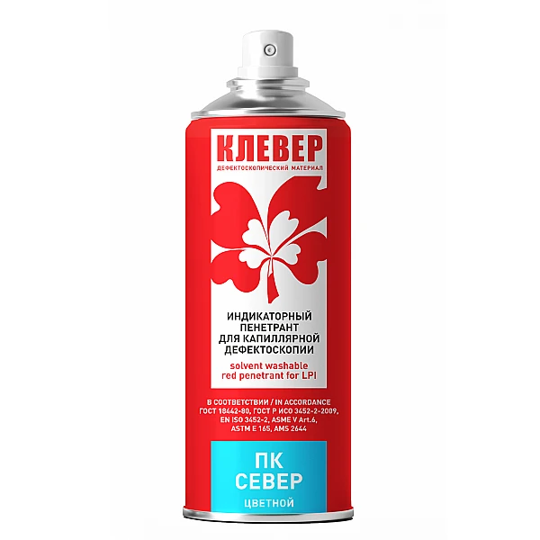 Цветные пенетранты для низкотемпературного применения КЛЕВЕР® ПК СЕВЕР являются отечественной альтернативой дорогостоящим  импортируемым аэрозолям и выпускаются полностью из высококачественных материалов отечественного  производства. Предназначены для применения в различных отраслях промышленности для контроля поверхностных дефектов размером от 0,5 мкм.