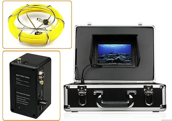 Простой, надежный и недорогой вариант системы телеинспекции для работы на дистанция 20 или 30 метров. Этот прибор позволит вам обследовать трубопроводы, вентиляционные каналы, шахты, емкости и полости, системы канализации.
