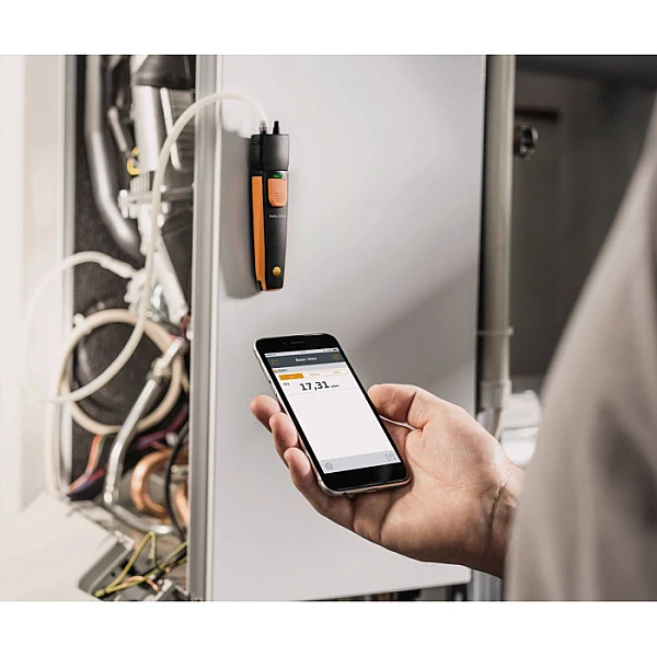 Рабочий диапазон беспроводного зонда Testo Smart Probes от -150 до +150 гПа при разрешении 0,01 гПа. Портативный прибор весит всего 92 г, за счет чего легко помещается в карман и не утомляет руки специалиста при длительных инспекциях на масштабных сетях коммуникаций. Зонд всегда можно закрепить на трубу или корпус котла при помощи встроенного магнита. Один комплект элементов питания обеспечивает до 150 ч непрерывных замеров.