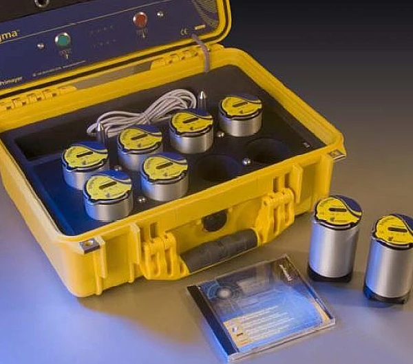 Enigma™– не имеет радиоканала, не имеет проводов, а значит, нет потери информации которая снимается с трубы. Результатом является высокая эффективность обнаружения утечек. Течеискатель состоит из 8 герметичных датчиков (минимальное количество датчиков 2 шт), которые установлены в водонепроницаемом кейсе. Кейс предназначен для хранения, транспортировки и программирования датчиков через USB порт компьютера. В отличие от предыдущей модели Zetacorr, Enigma осуществляет связь с ПК при помощи оптронной связи, что резко увеличило скорость считывания информации. Это крайне удобно при работе в режиме обследования сети. Кроме этого датчики можно программировать и считывать без ПК, при помощи одного кейса.