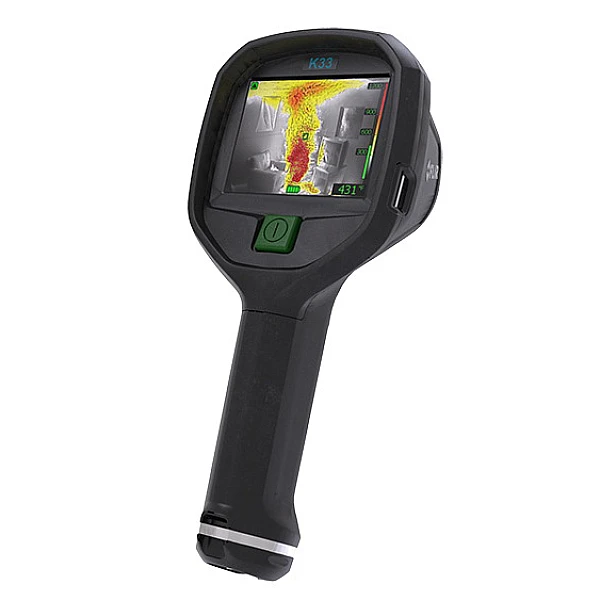 FLIR K33 — простой тепловизор для пожарных, управляется всего одной кнопкой. Прибор получил новую функцию FSX, которая усиливает структурные и текстурные детали инфракрасных изображений, позволяя получить очень чёткие тепловизионные снимки в полностью затемнённых и задымлённых помещениях. Неохлаждаемый микроболометр позволяет снимать изображения в инфракрасном диапазоне с разрешением 240 x 180 пикселей. Полученная информация отображается на ярком 4-дюймовым 60 Гц. дисплее.
