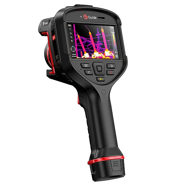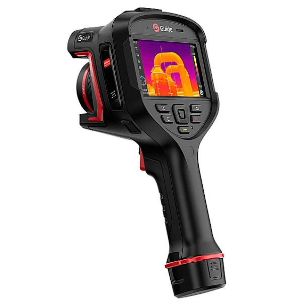 Тепловизор Guide H6 (Hammer Series) оснащён детектором с разрешением 640 x 480 пикселей и чувствительностью 40 мК, частота кадров 30Гц. Диапазон измерения температуры -40°C +150°C, 0°C +650°C с автоматическим переключением режимов работы, 5 режимов фокусировки, цифровое увеличение 1.1x до 20x. Тепловизор оснащён 8 мегапиксельной камерой, есть функция наложения изображений, фото с камеры видимого спектра на термограмму, в результате получается более чёткое ик-изображение за счёт прорисовки краёв объектов. В комплекте с камерой два аккумулятора, зарядки хватает на 4 часа работы.
