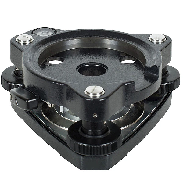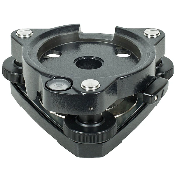 Трегер предназначен для высокоточной горизонтовки приборов при помощи подъемных винтов с плавным ходом и круглого пузырькового уровня. Для установки над точкой съемки можно использовать лазерный или оптический центрир, встроенный в тахеометр, а также специальный адаптер. Крепление реализовано по стандарту “Wild”.