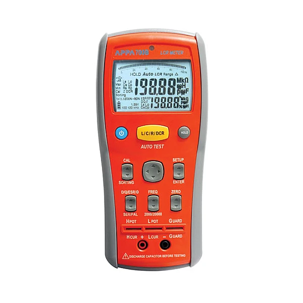 В измерителе имеется интеллектуальная схема автовыбора режима измерений. При включении питания автоматически измеряется: L/ C/ R с отображением параметра Q, D и θ (703) в зависимости от типа подключенного типа компонента (радиодетали).