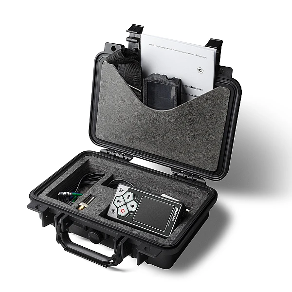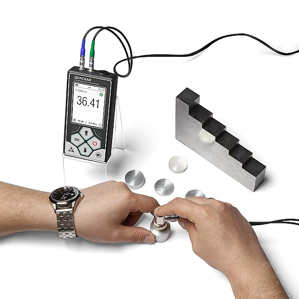 Толщиномер предназначен для измерения толщины изделий, изготовленных из материалов с затуханием ультразвуковых колебаний, позволяющим получить эхо-сигналы, отраженные от конструкционных поверхностей с использованием ультразвуковых пьезопреобразователей по ГОСТ 26266.