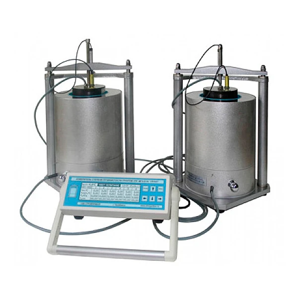 Прибор состоит из блока управления с увеличенным дисплеем и от одного до шести термоконтейнеров для поддержания условий промораживания образцов грунта, включающих силовую рамку, теплоизолирующий кожух, верхнюю и нижнюю термостатируемые плиты, устройства для автоматического измерения температур, силы и перемещения и терморегулятор для управления морозильной камерой.