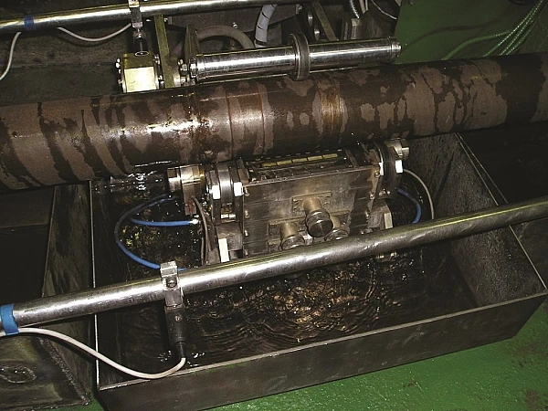 Автоматизированная ультразвуковая измерительная установка серии «СКАНЕР» (модель № 5.03) с автоматической фиксацией и расшифровкой результатов контроля предназначена для проведения неразрушающего контроля стальных бесшовных труб диаметром 50 … 426 мм и толщиной стенки 3.0 … 40.0 мм в технологическом потоке производства труб. Установка АУЗК позволяет проводить сплошной контроль тела трубы и определять участки труб с толщиной стенки, выходящей за пределы допусков и обнаруживать расслоения, а также выявлять продольно и поперечно ориентированные дефекты в металле. Способ ввода ультразвуковых колебаний – иммерсионный, контактная жидкость – питьевая вода. Длина неконтролируемых концов не более 200 мм. Работа установки