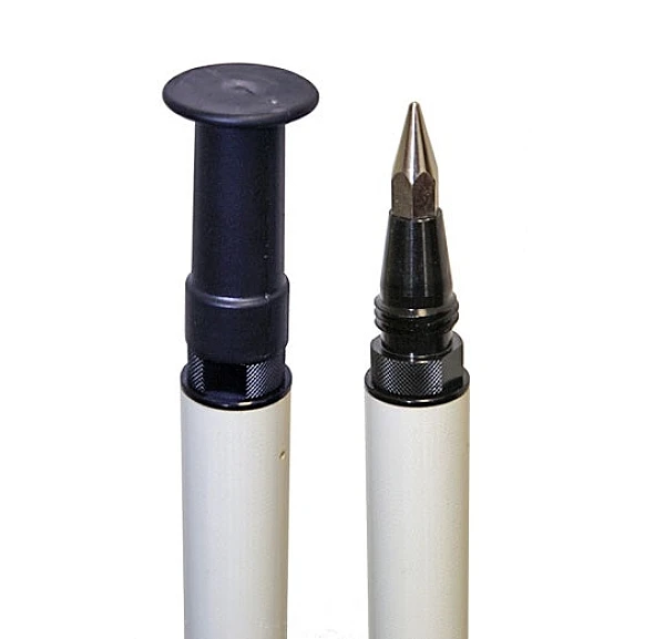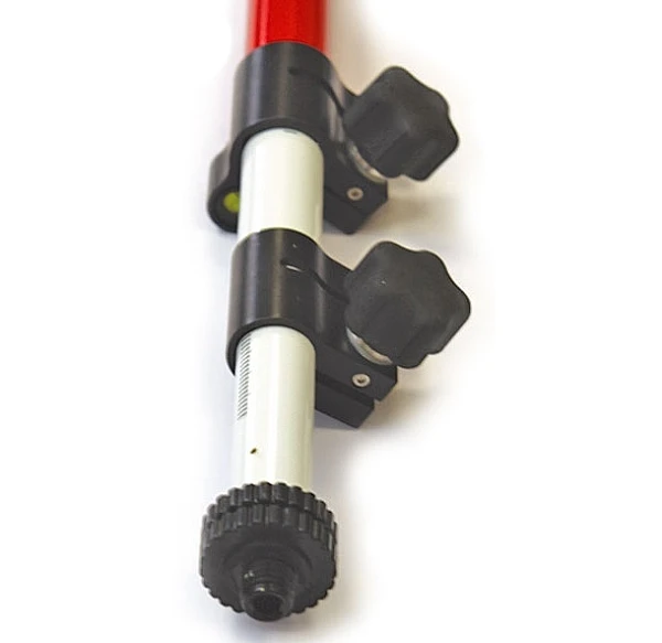 Сверхлёгкая (всего 1,13 кг) телескопическая веха 5541-20 предназначена для установки отражательных систем или ГНСС приемников. Веха изготовлена из непроводящего ток фибергласса. Для установки в вертикальное положение веха снабжена 40’ уровнем, совмещенным с закрепительным механизмом. Закрепительный TLV механизм позволяет надежно фиксировать секции. Верхняя секция имеет установочную резьбу 5/8x11. Сантиметровая градуировка позволяет точно устанавливать веху на высоту до 3,50 метра. В нижней части вехи расположен наконечник, который при необходимости может быть закрыт специальной насадкой для установки на нетвердое основание.